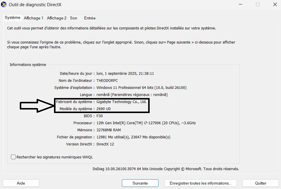 – Your current Microsoft-bloated PC: just press Win ⊞ + Rand typedxdiag– it’s the directx diagnostic tool – and hit Enter. You will see the System Model and the Manufacturer, exactly what you need.
