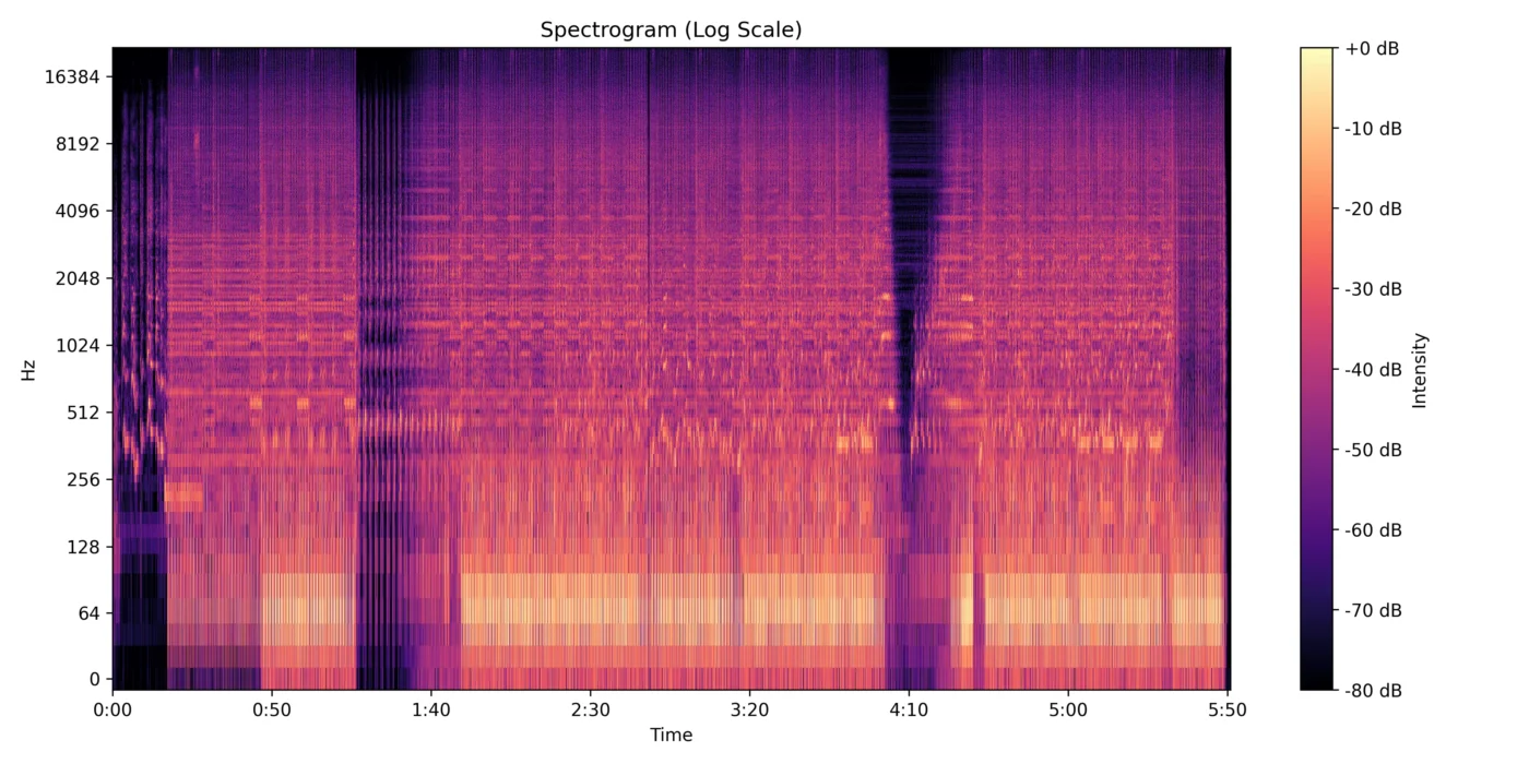 Spectrograms: Bell Labs popularized the sound spectrograph in the 1940s – “voiceprints” for speech and birdsong. Today we compute a short-time Fourier transform (STFT) slide-window, turn magnitudes to dB, and color them over time * frequency. The app results two spectrograms: